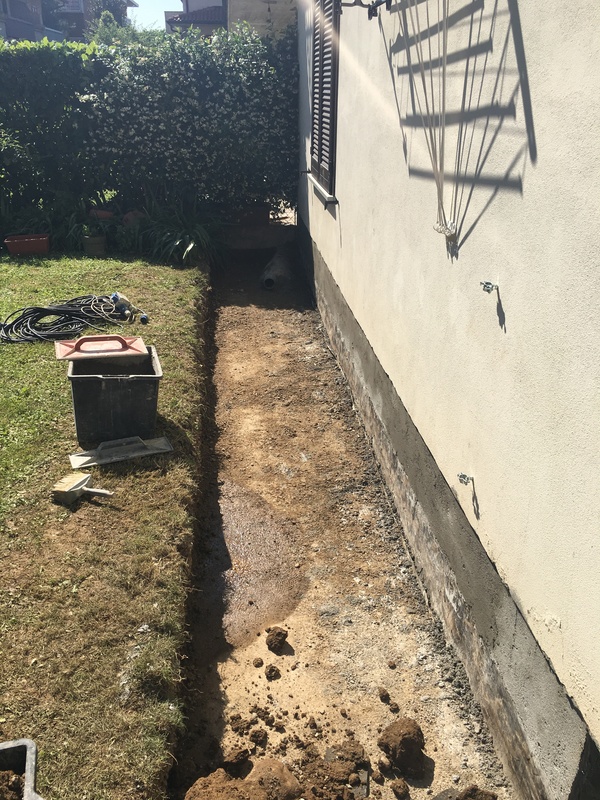 Rifacimento marciapiede e sottoservizi fabbricato residenziale nel Comune di Curno.